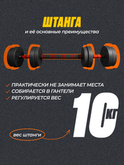 Штанга - трансформер - собирается из двух гантелей по 5 кг при помощи специального коннектора.