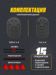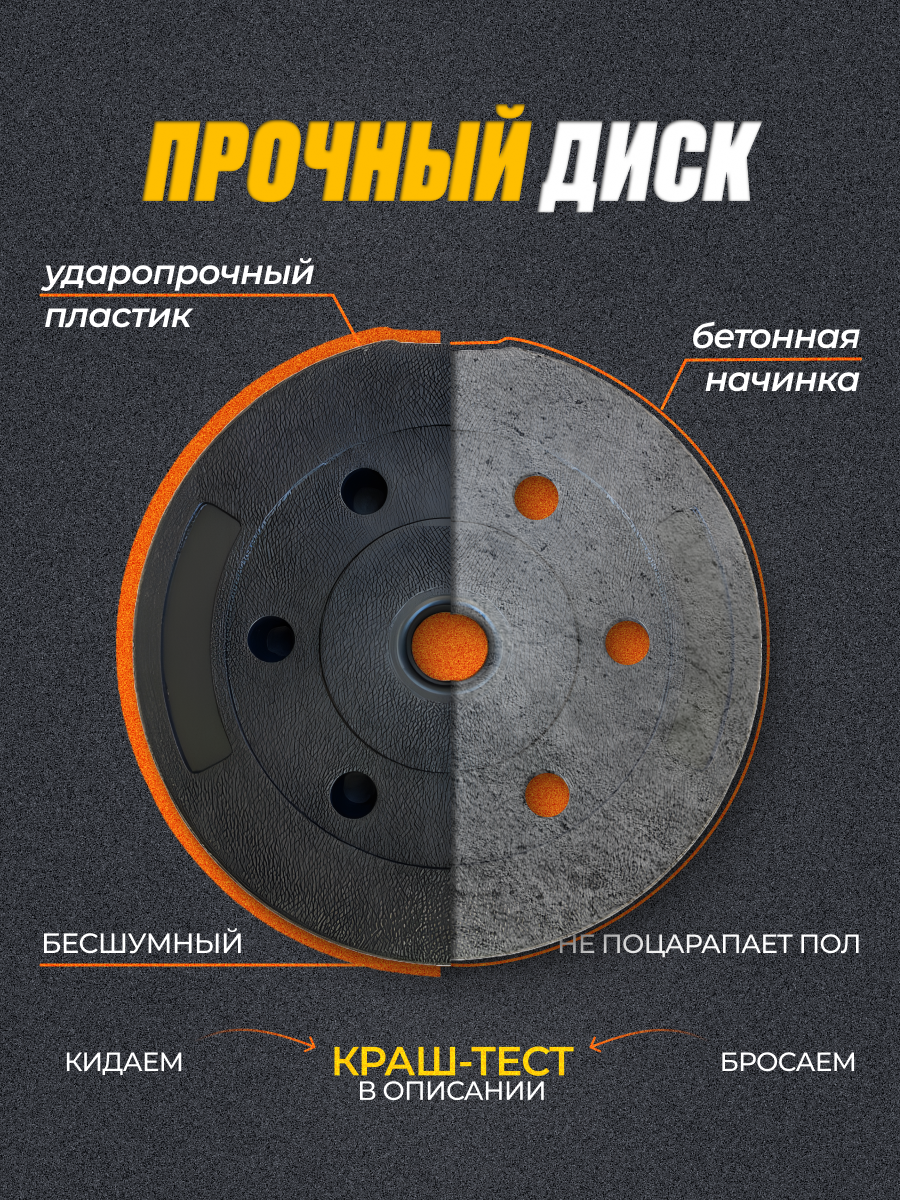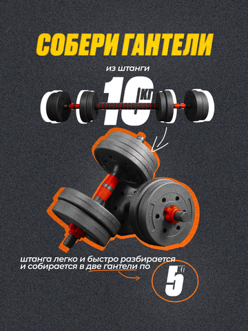 За указанную цену Вы получаете как штангу 10кг, так и 2 гантели по 5кг!
