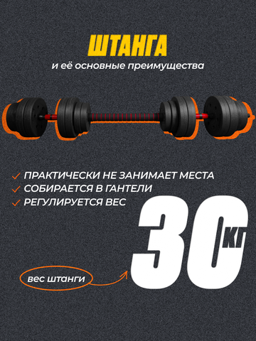 Штанга - трансформер - собирается из двух гантелей по 15 кг при помощи специального коннектора.