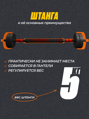 Штанга - трансформер - собирается из двух гантелей по 5 кг при помощи специального коннектора.