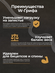 Хват у этого грифа анатомически более удобен. Он снимает нагрузку с предплечий, что очень полезно, так как это позволяет дать большую нагрузку на целевую группу мышц.